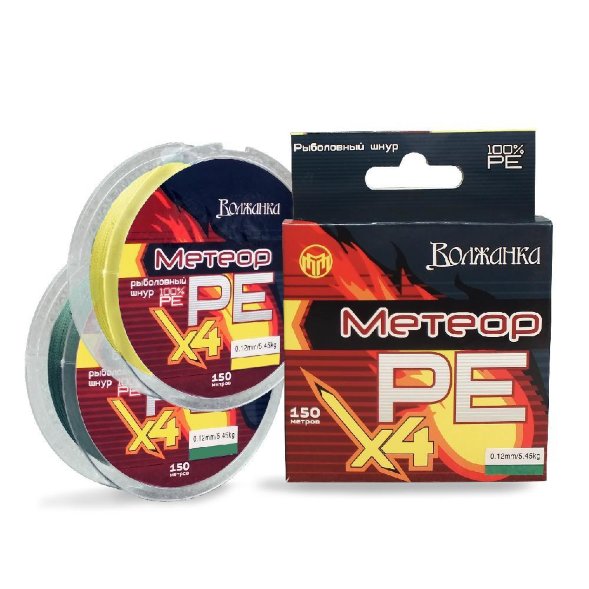 Леска-шнур Волжанка Метеор Х4 150м/0.18мм 9.10кг флуо желтый