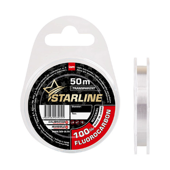 Произведенный из оригинального японского материала, 100% флюорокарбон Starline является продуктом, который сумел собрать в себе только положительные качества и не имеет недостатков. В толще воды практически невидим, что не помешает использованию ярких шнуров и лесок. Весь размерный ряд калиброван, что даст уверенность в заявленных показателях разрывной нагрузки. Материал устойчив к абразиву, что расширяет границы использования. А цена является одной из самых доступных на рынке!